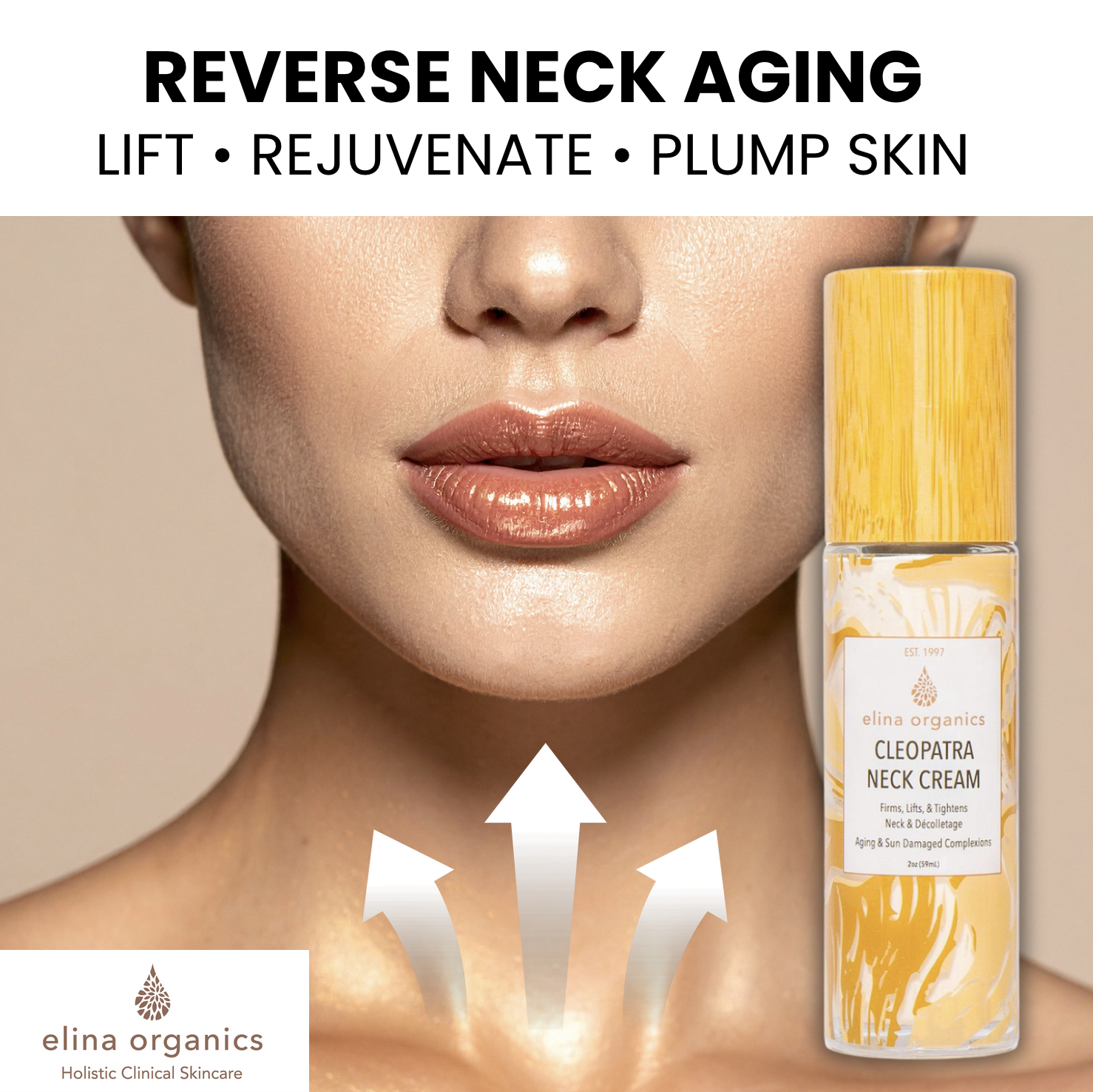 "This product is amazing! I just started using it and can not believe the results. My neck and chest lines/wrinkles are fading with each use. I am sold on Elina products" –Julie